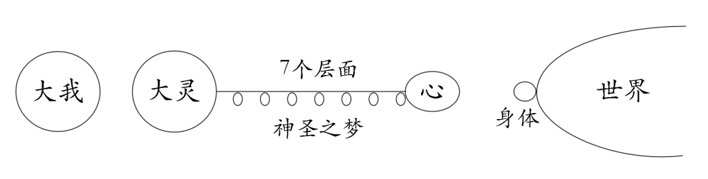 在运作的心与止息的心之间,也就是在有限妄我与无限妄我之间,或者说在心与大灵之间,有七个阶段、七个层面、七个世界。